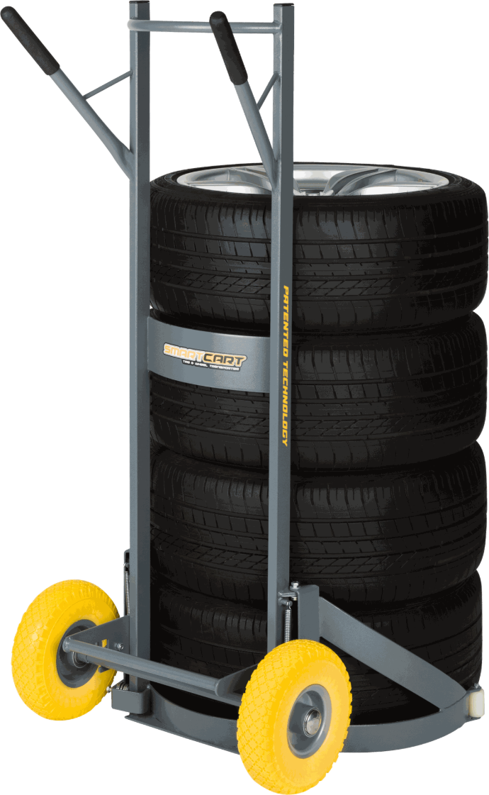 - Helppo ja turvallinen renkaiden siirto – Kärry kantaa renkaat puolestasi, eikä niitä tarvitse nostaa maasta käsin.